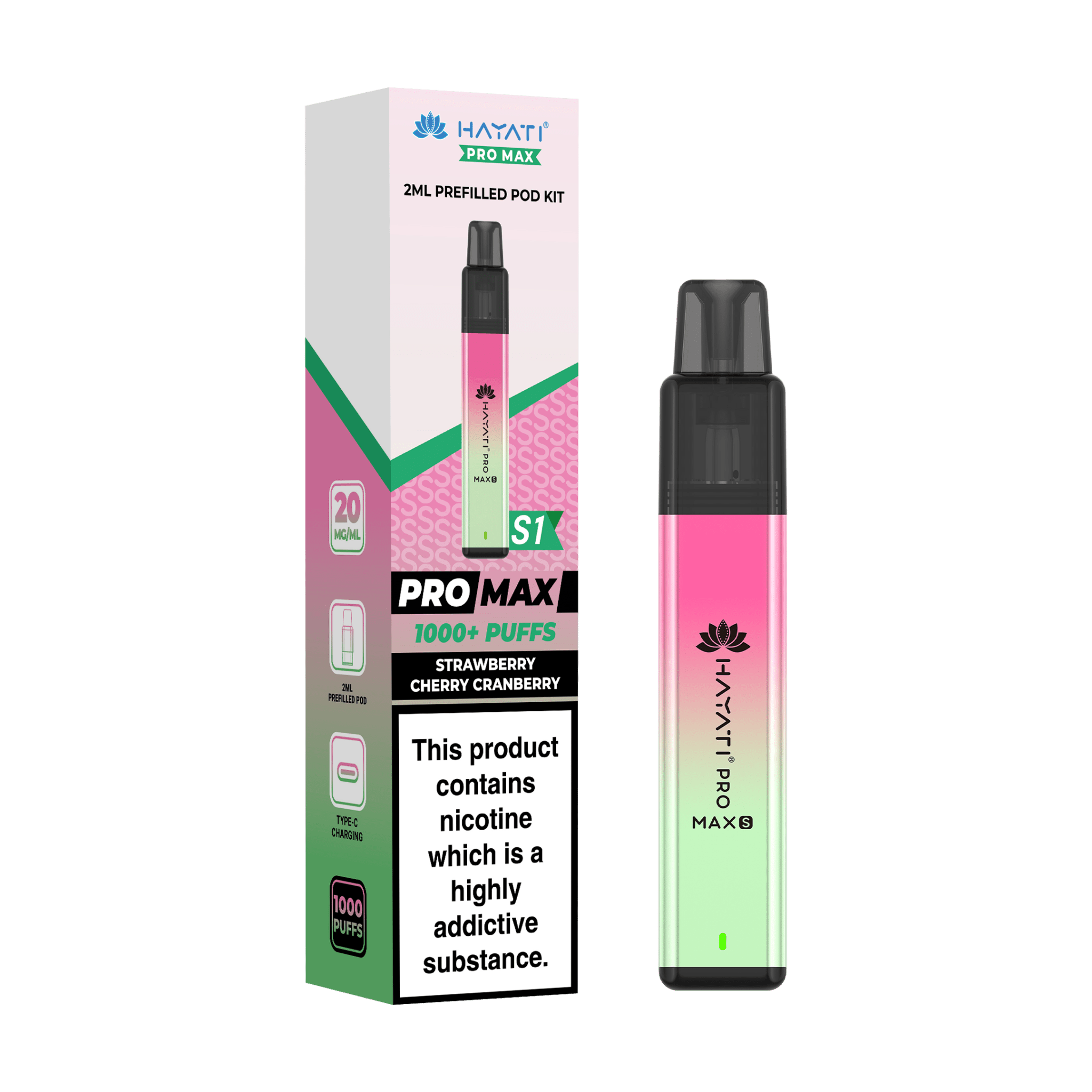 Hayati Pro Max S1 Vape Kit Box of 10 Strawberry Cherry Cranberry